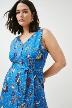 Budget ๐ Karen Millen Plus Size Floral Batik Linen Viscose Woven Midi – blue โจ