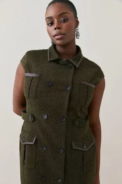 Cheap ๐ Karen Millen Lydia Millen Plus Size Tweed Midi ๐ Dress – dark green ๐งจ
