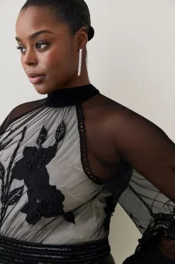Outlet 😀 Karen Millen Plus Organdie Applique Buttoned Woven Blouse – black 👍