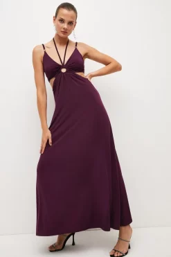 Brand new ๐ Karen Millen Plus Size Ombre Pleat Corset Detail Woven Maxi – burgundy โ