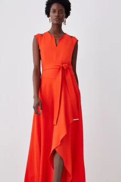 Deals ๐ Karen Millen Tall Compact Stretch Viscose Waterfall Midi ๐ Dress – red orange โค๏ธ