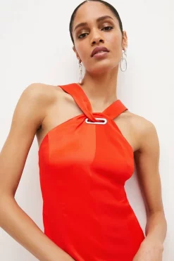 Budget ๐ Karen Millen Viscose Satin Back Crepe Feather Cami Midi ๐ Dress – turquoise โค๏ธ