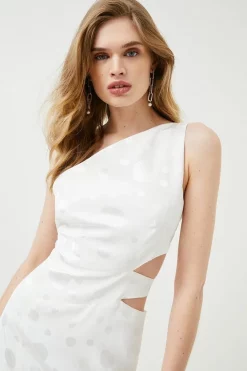 Wholesale ๐ Karen Millen Petite Mixed Dot Piped Ruffle Georgette Midi ๐ Dress – white ๐งจ