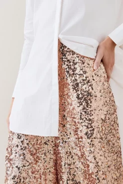 Best Pirce 🤩 Karen Millen Lydia Millen Tall Textured Sequin Wide Leg Trousers – rose gold 🥰