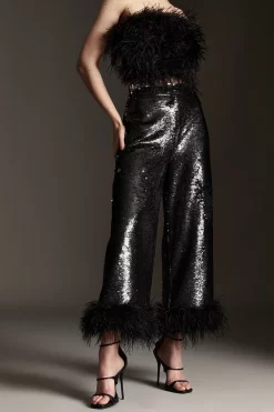 Wholesale ๐ฅ Karen Millen Lydia Millen Textured Sequin Wide Leg Woven Trousers – rose gold โค๏ธ